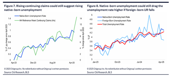 值得关注的是,花旗分析师指出,移民政策变化可能从6月开始对就业数据产生更明显影响。5月下旬,两项法院命令支持特朗普政府撤销部分近期移民临时工作许可的能力。这些命令影响数十万近期移民,但政策变化对就业数据测量的时间和规模都存在很大不确定性。