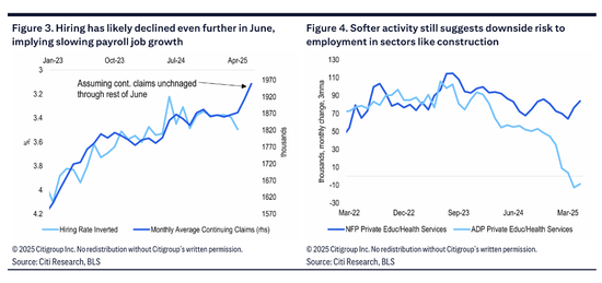 花旗银行也强调了招聘活动的显著放缓。预计夏季招聘疲软对季节性调整构成实质性阻力,因为私人部门就业通常在6月增加约80万个岗位。